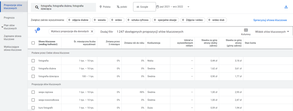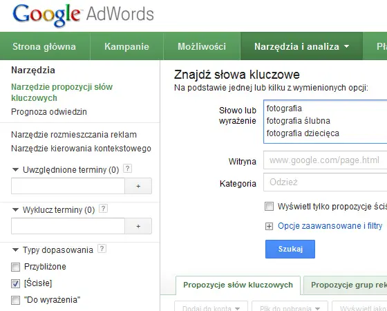Jest to bardzo ważne, ponieważ dzięki temu będziemy wiedzieć w przybliżeniu ile osób szuka danej frazy. Innym rozwiązaniem jest wymyślenie jakiejś chwytliwej nazwy, np. probloger.pl czy kursebiznesu.pl. Mała uwaga – po ostatnich zmianach algorytmu wyszukiwaki, Google trochę mniej przychylnym okiem patrzy na domeny ze słowami kluczowymi. Dlatego BARDZO WAŻNE jest, aby na tych domenach mieć wartościową treść.